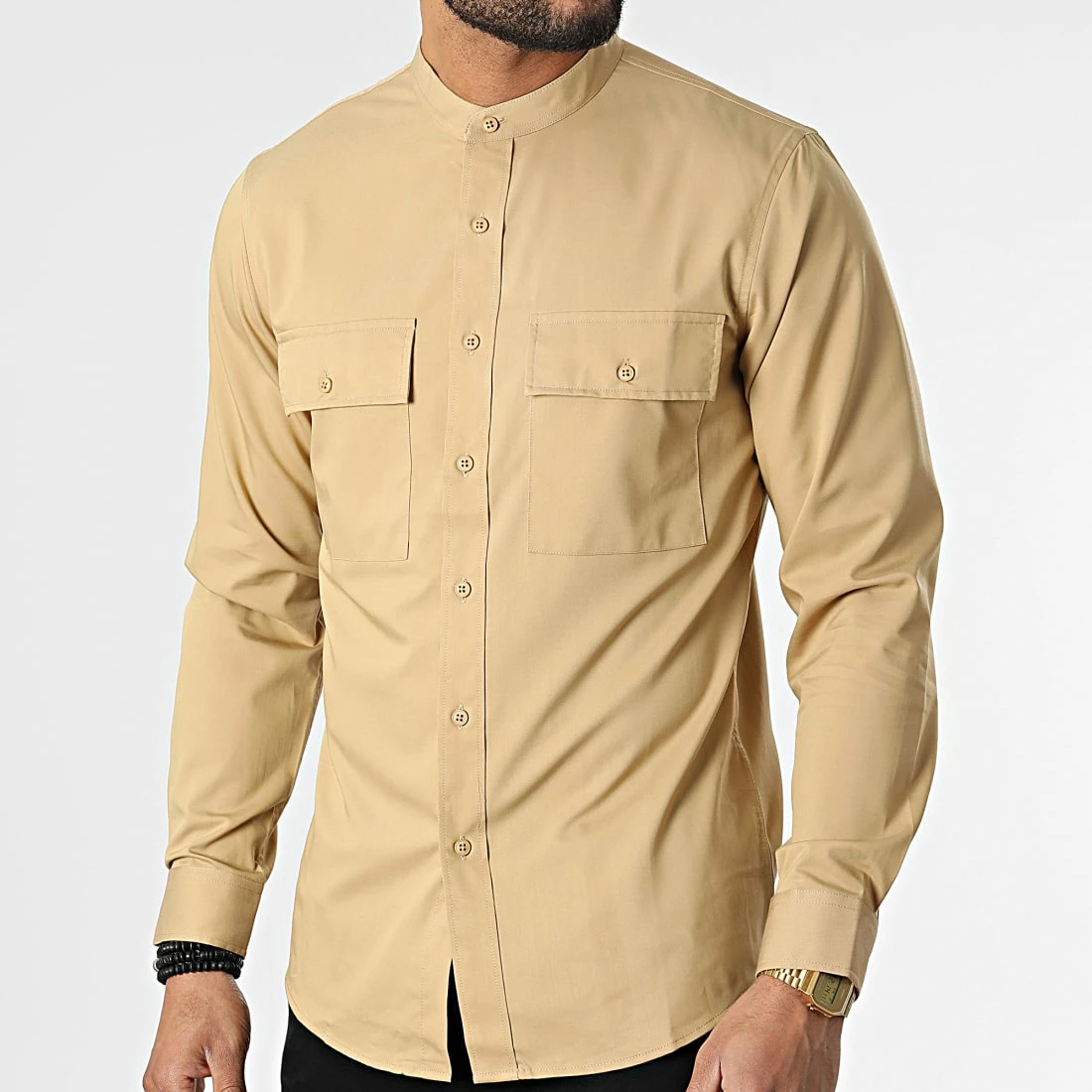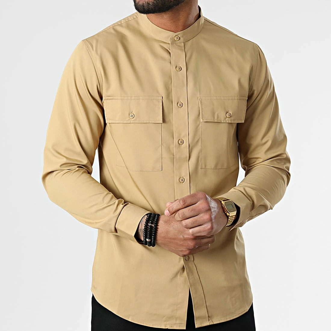 • Chemise manches longues fluide avec poches poitrine boutonnées