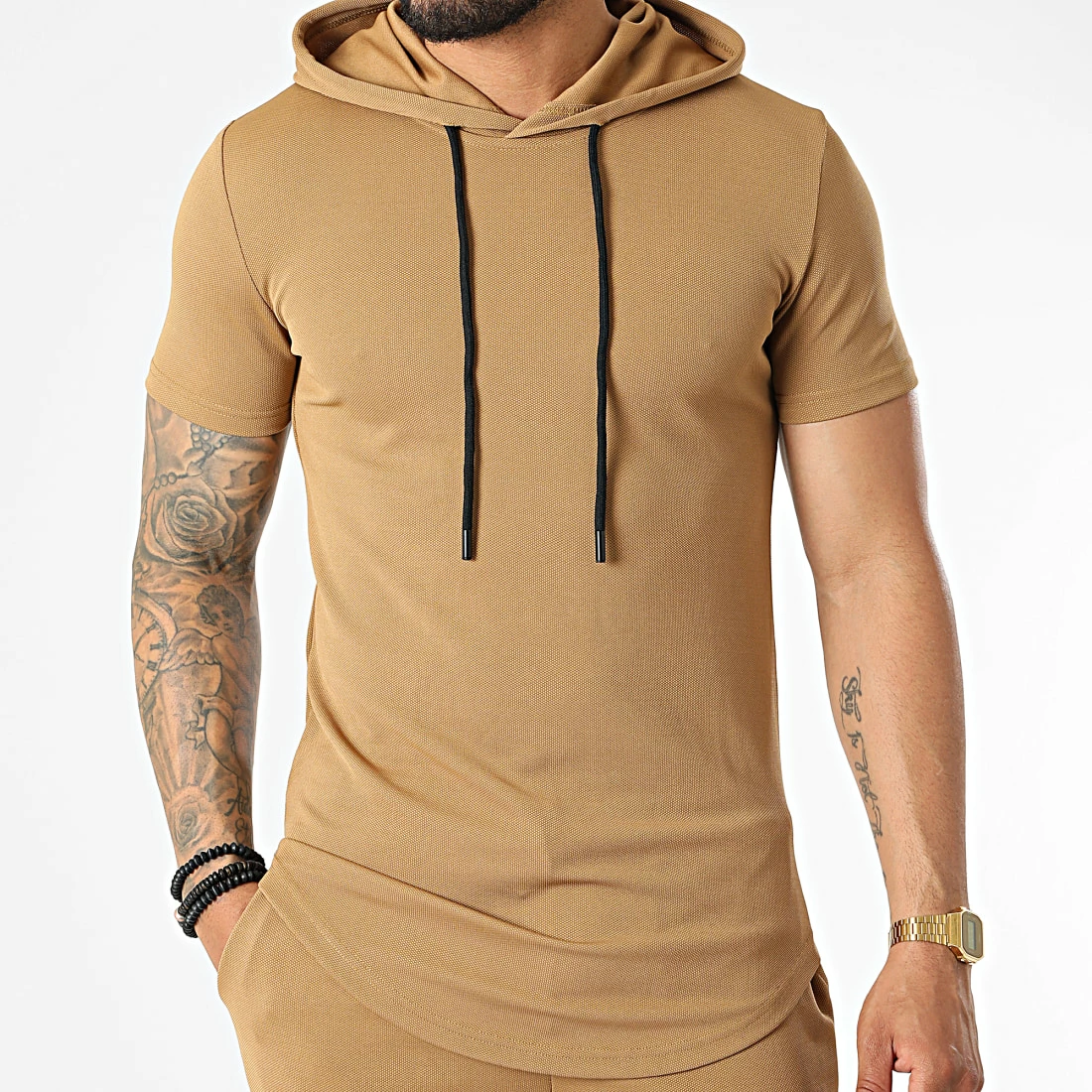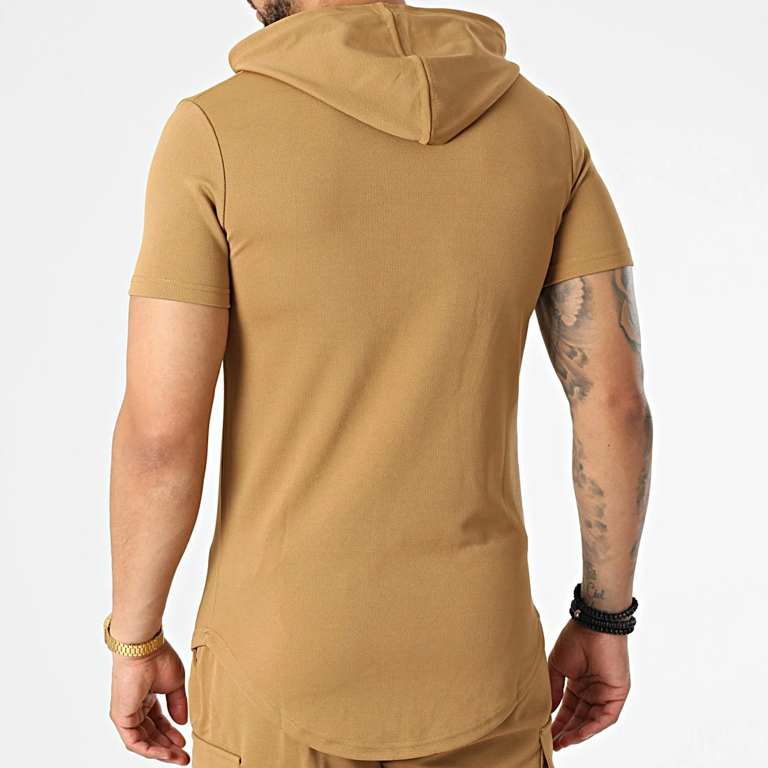 Remise 🎉 Ensemble Tee 👚 Shirt Capuche Et Short Jogging DD58-PP58 Camel de John H 🥰