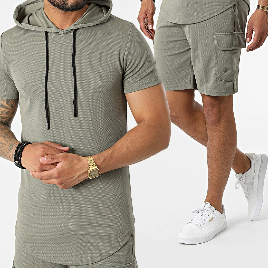 Grosses soldes 😀 Ensemble Tee 👚 Shirt Capuche Et Short Jogging DD58-PP58 Vert Kaki de John H 🎉