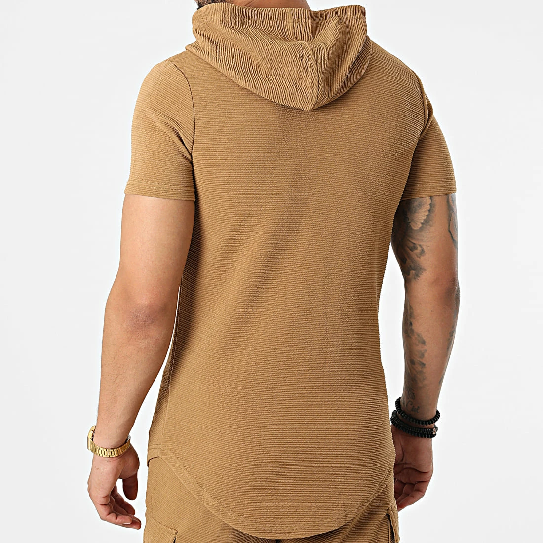 • Ensemble tee shirt capuche et short jogging texturé
