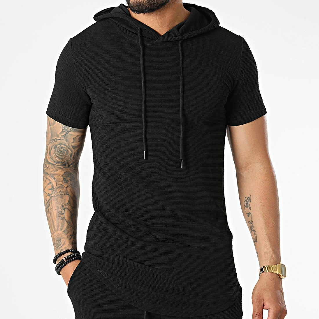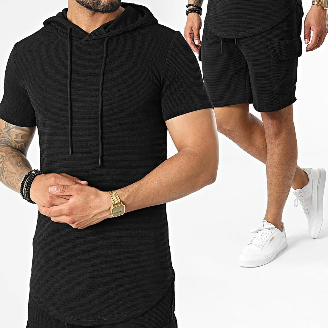 • Ensemble tee shirt capuche et short jogging texturé