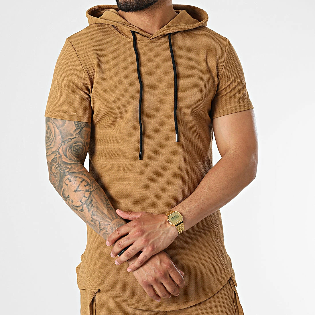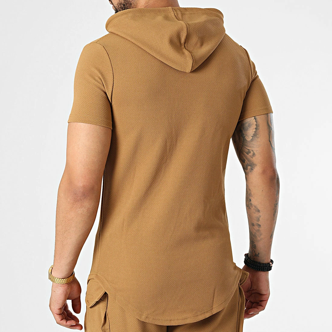 • Ensemble tee shirt capuche et short jogging texturé