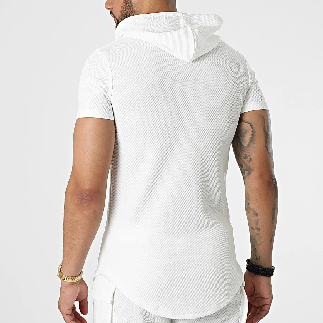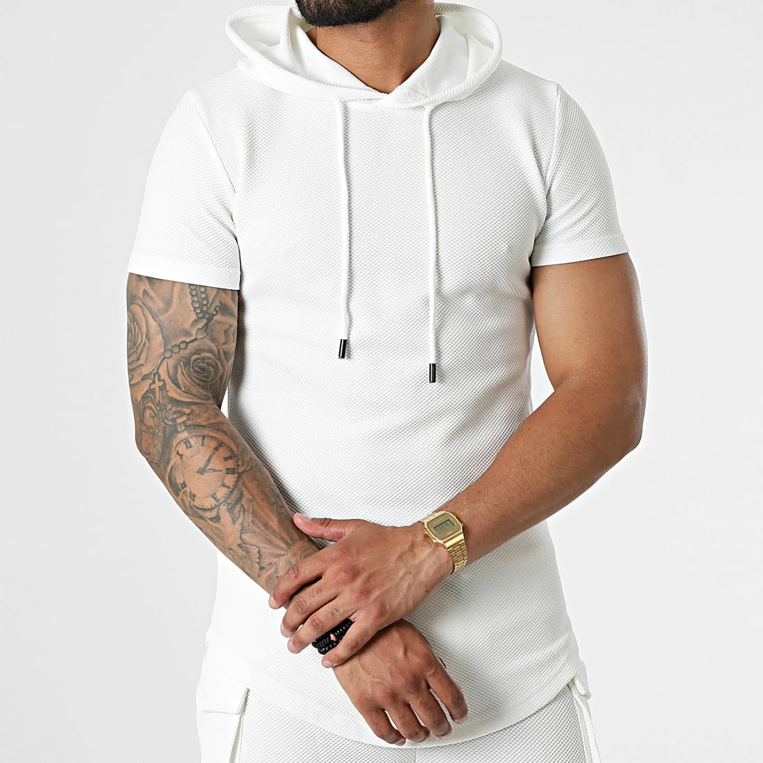 Promo 🤩 Ensemble Tee 👚 Shirt Capuche Et Short Jogging PP66-DD66 Blanc de John H 😀