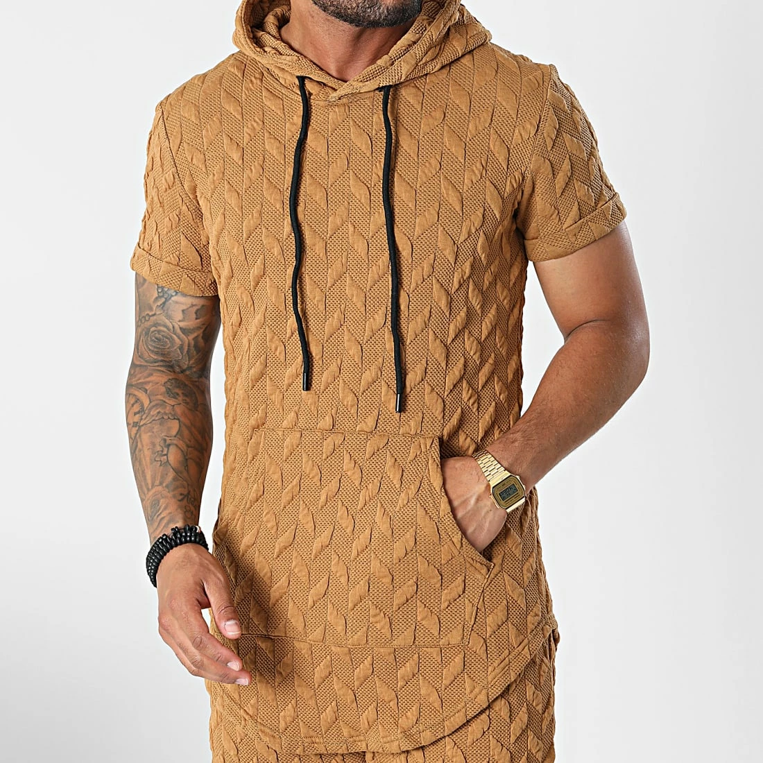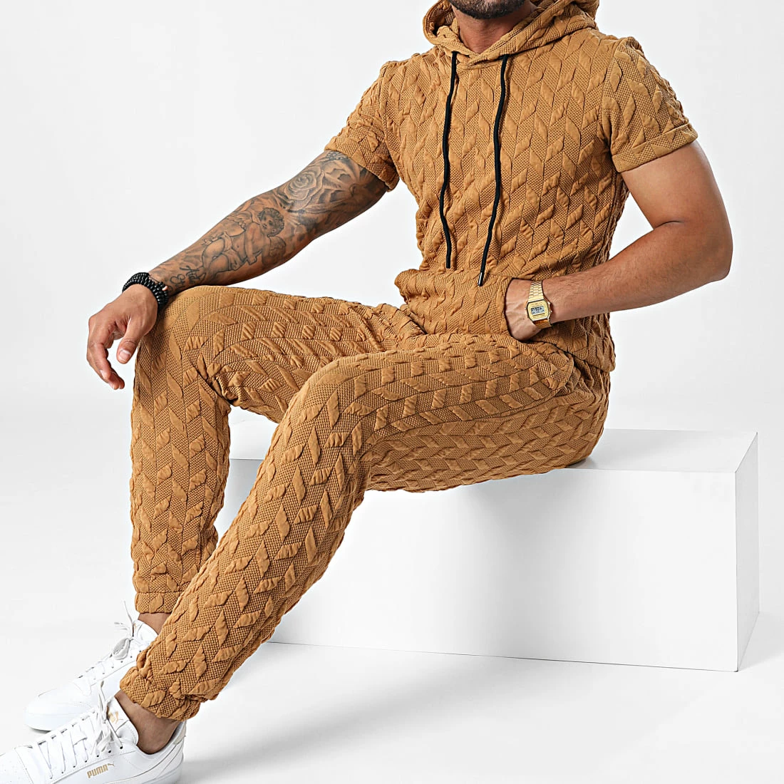 • Ensemble tee shirt capuche et pantalon jogging tendance avec motif texturé