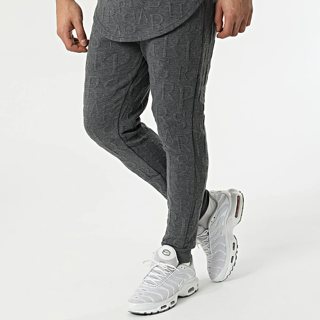 • Pantalon jogging avec motif texturé ton sur ton brodé dans la maille