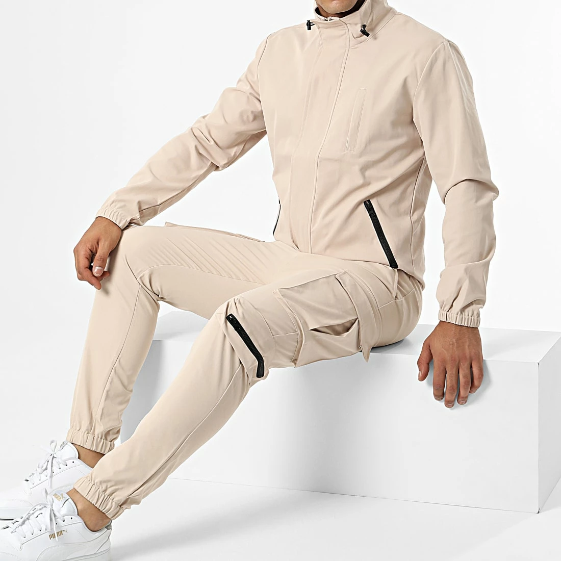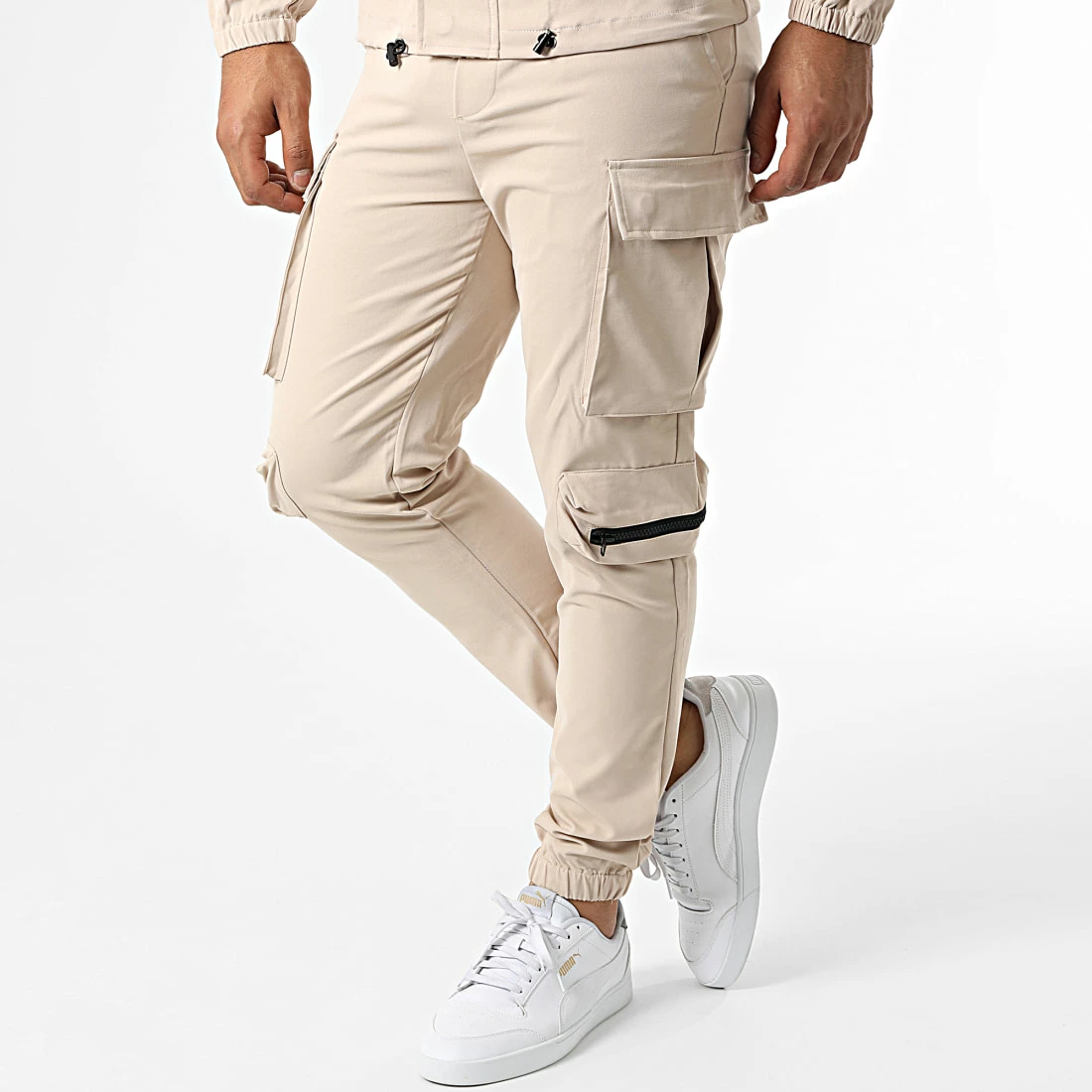 • Ensemble veste zippée et pantalon cargo style utilitaire