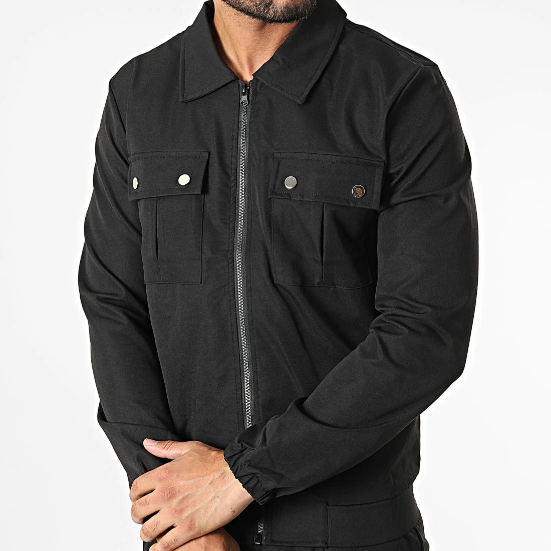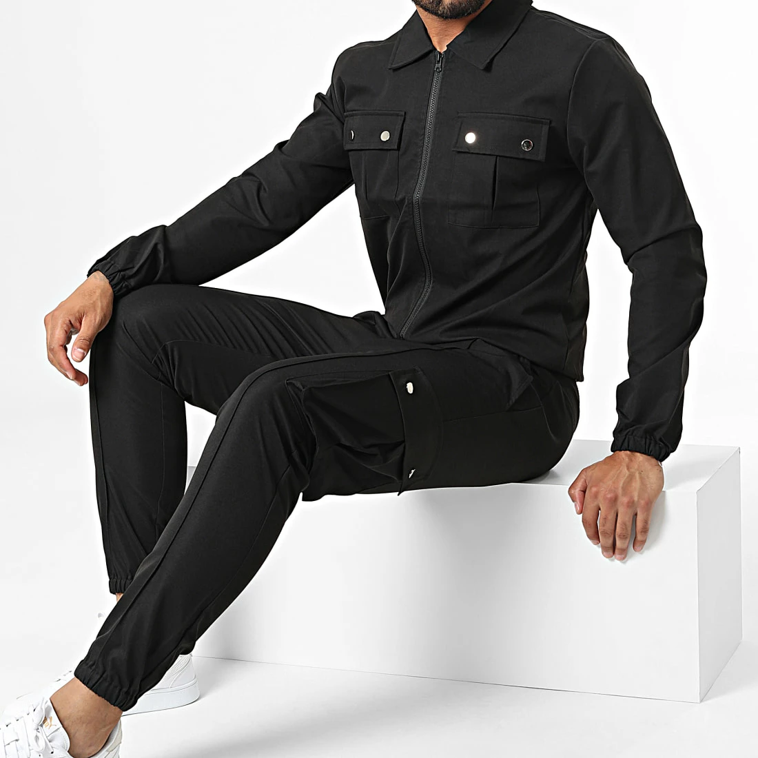 Vente flash 🤩 Ensemble Veste Zippée Et Pantalon Cargo AB352 Noir de John H 👏