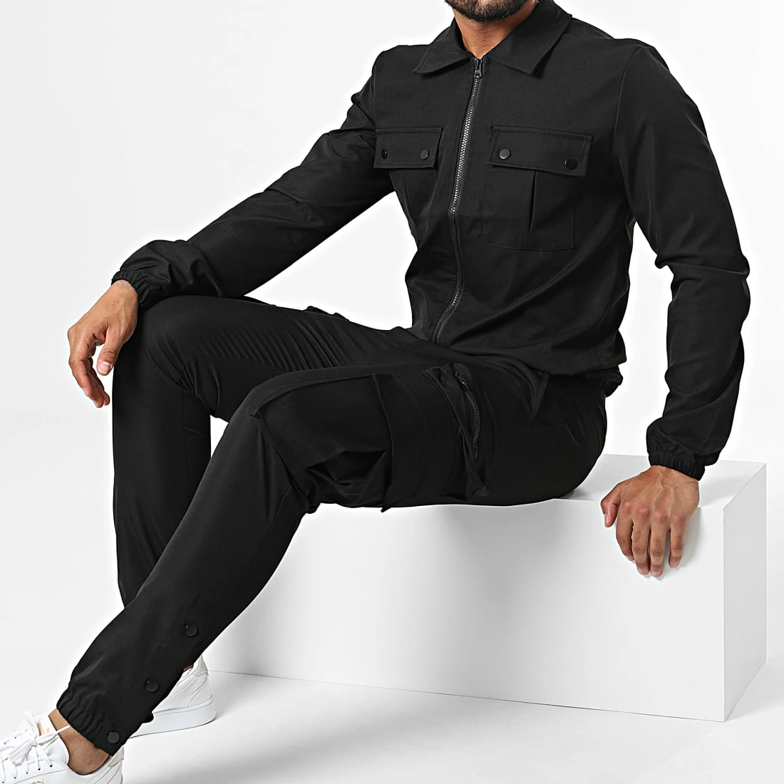 Meilleure affaire 🤩 Ensemble Veste Zippée Et Pantalon Cargo AB361 Noir de John H 😀
