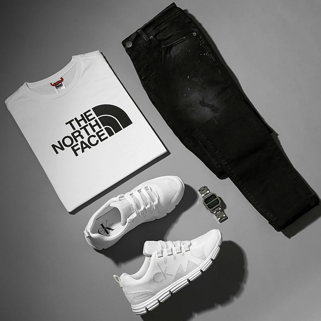 • Jean tendance à finition usée, tachée et délavée avec rapiéçages