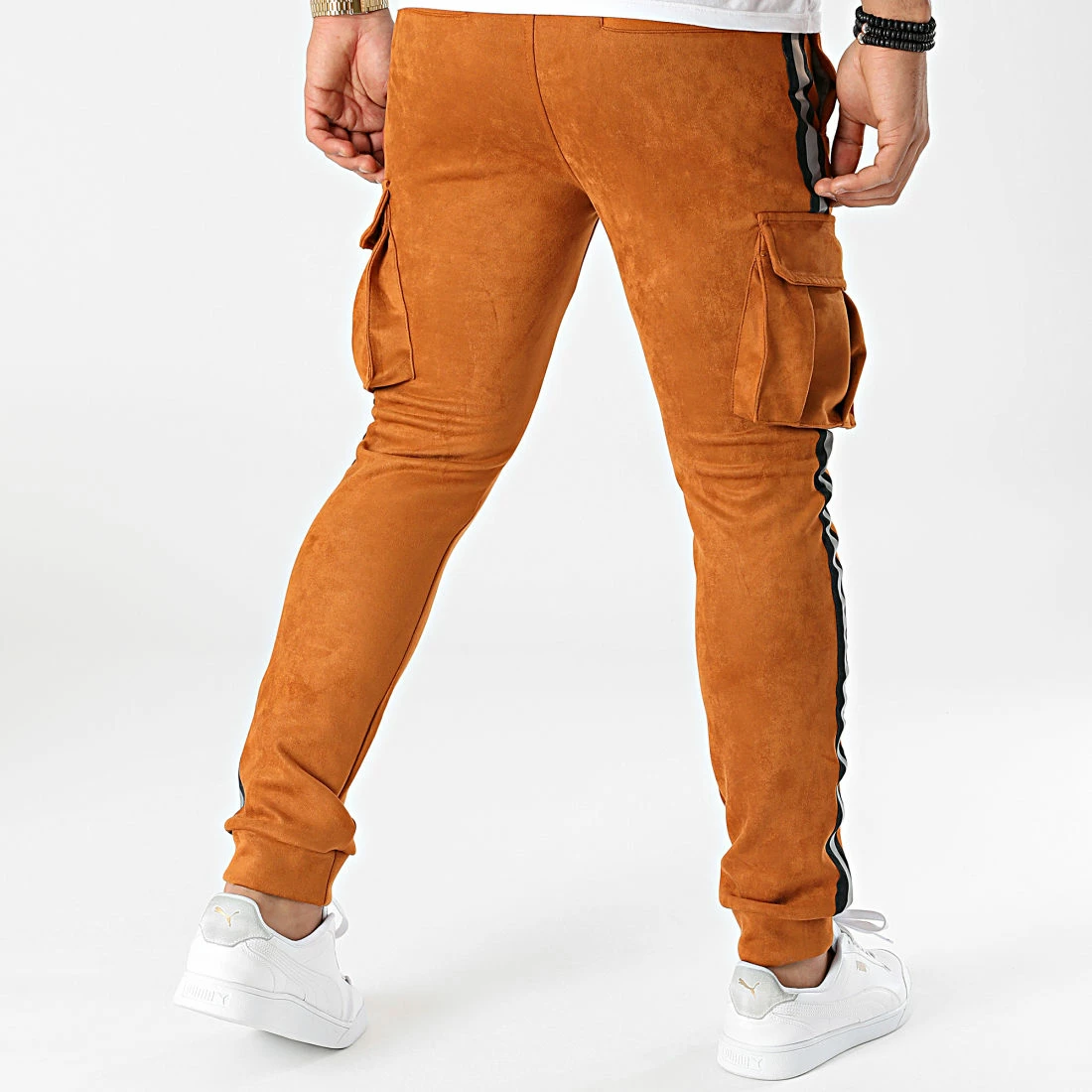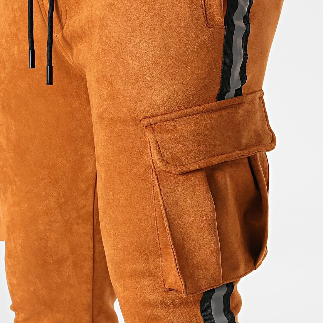 • Pantalon aspect suédine avec poches cargo velcro et bandes réfléchissantes