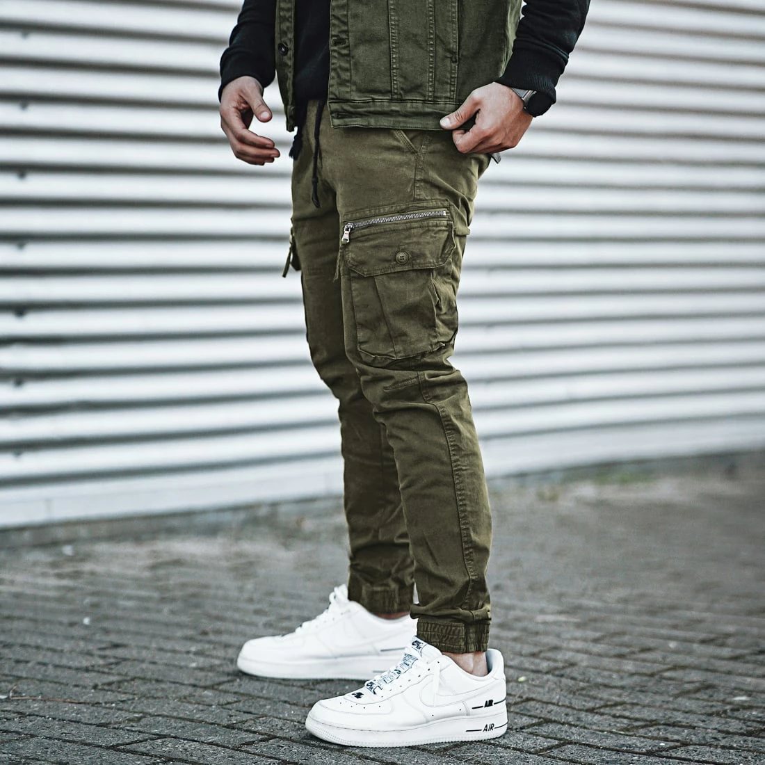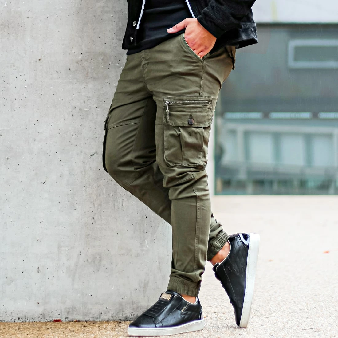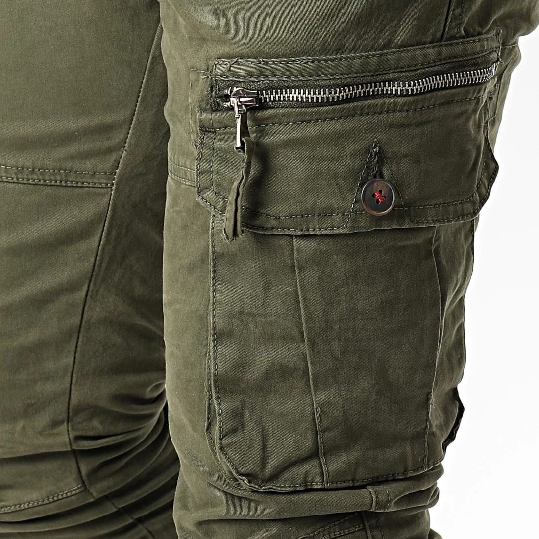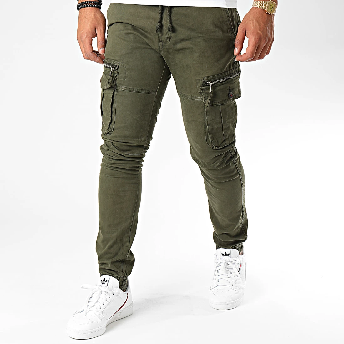 • Jogger pant finition légèrement délavée avec poches cargo et zips métalliques décoratifs