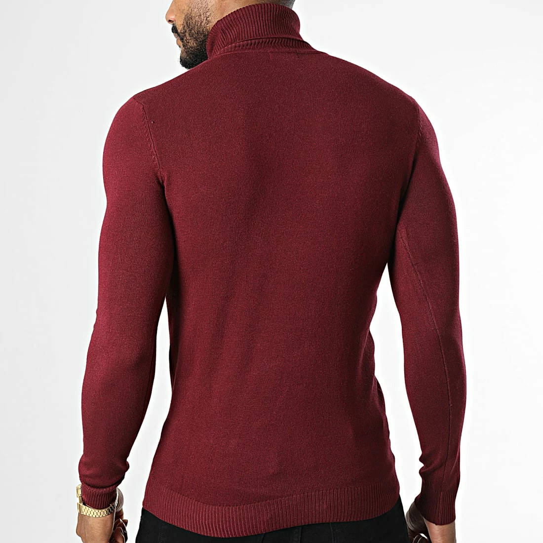 Promo 🔔 Pull Col Roulé ZW001 Bordeaux de John H ✨