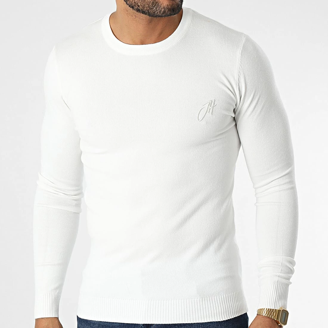 • Pull confortable essentiel tendance avec logo John H brodé