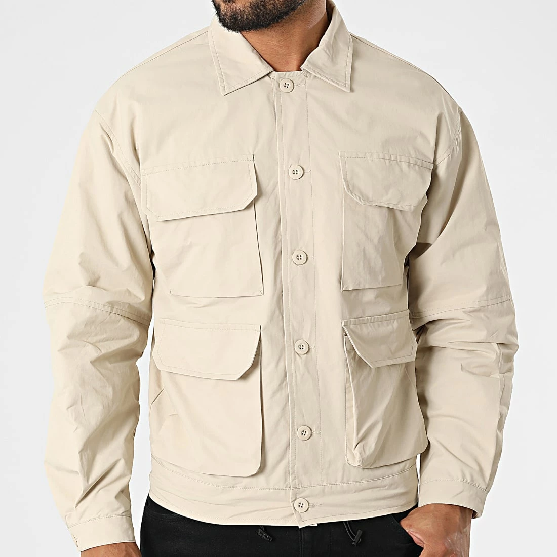 • Poches latérales, poches poitrine à rabat boutonné