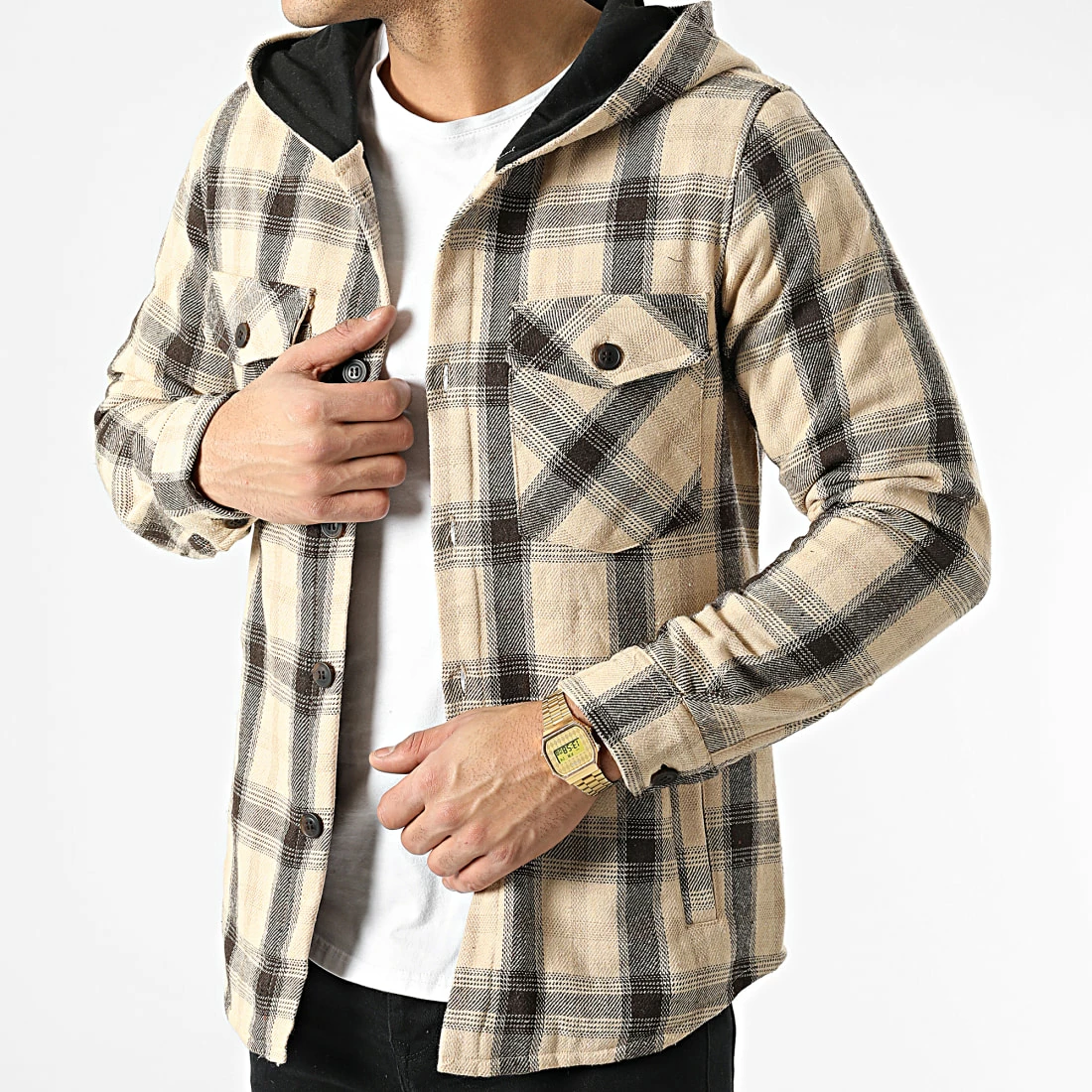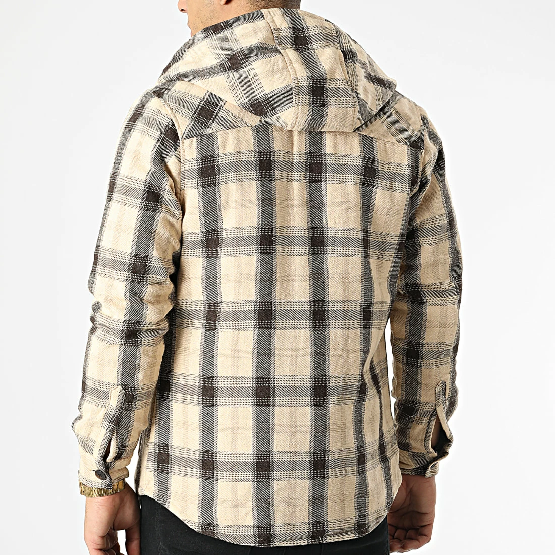• Surchemise capuche tendance avec motif à carreaux brodé