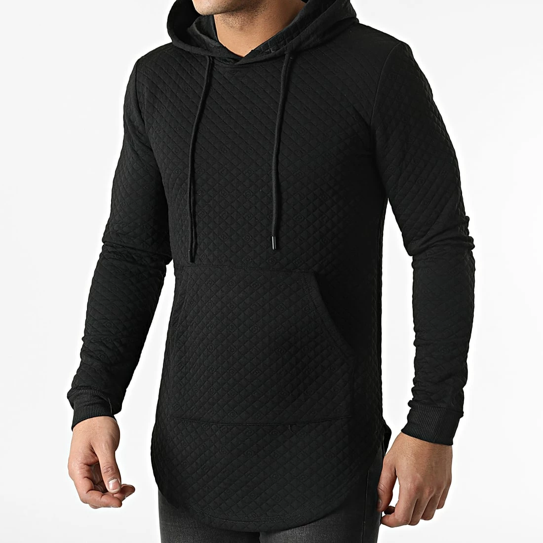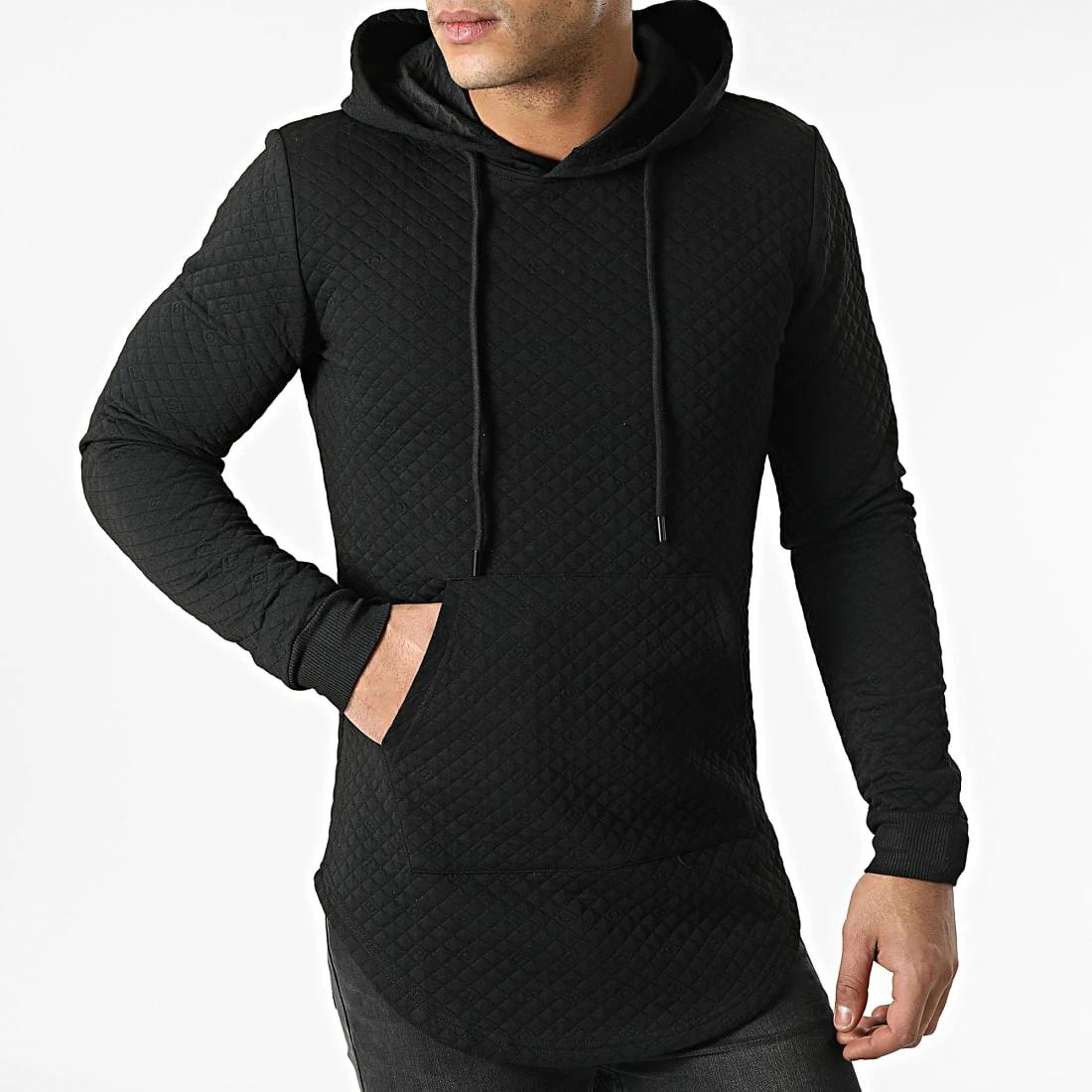 • Sweat capuche oversize tendance avec motif à carreaux brodé ton sur ton