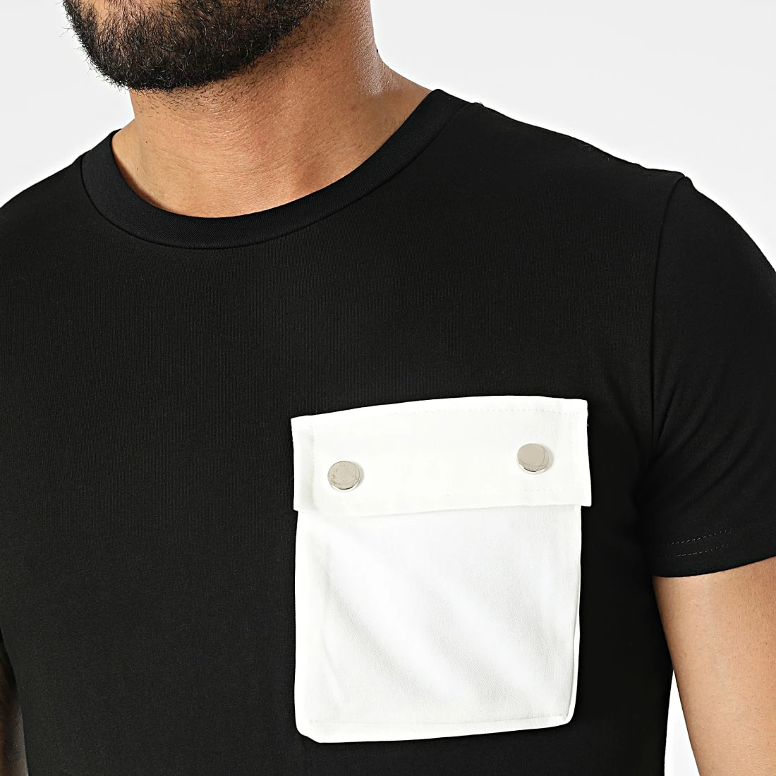 Meilleure affaire 🥰 Tee 👕 Shirt Poche T612 Noir Blanc de John H ❤️