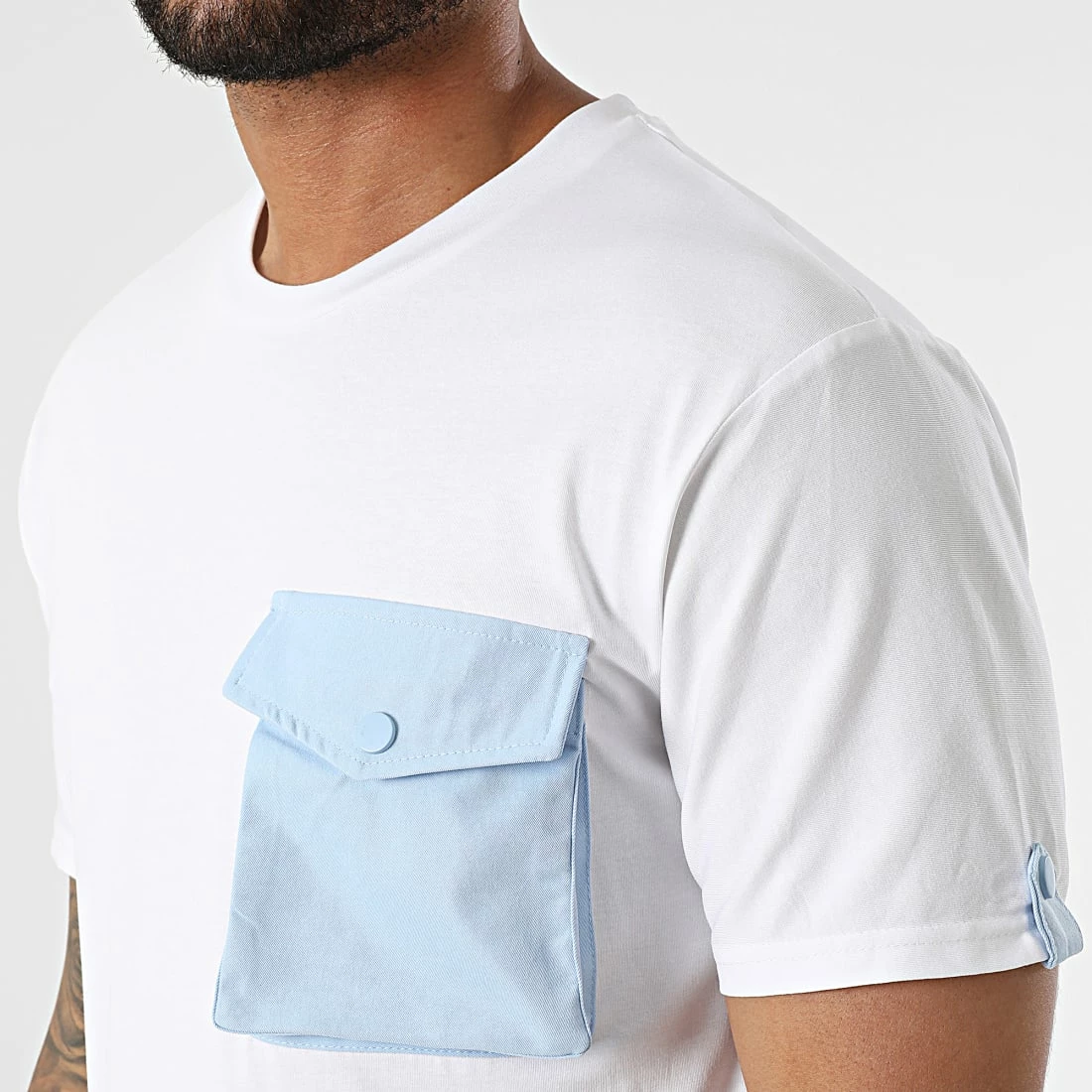 Grosses soldes 🔥 Tee 👕 Shirt Poche T8814 Blanc Bleu Clair de John H ✔️