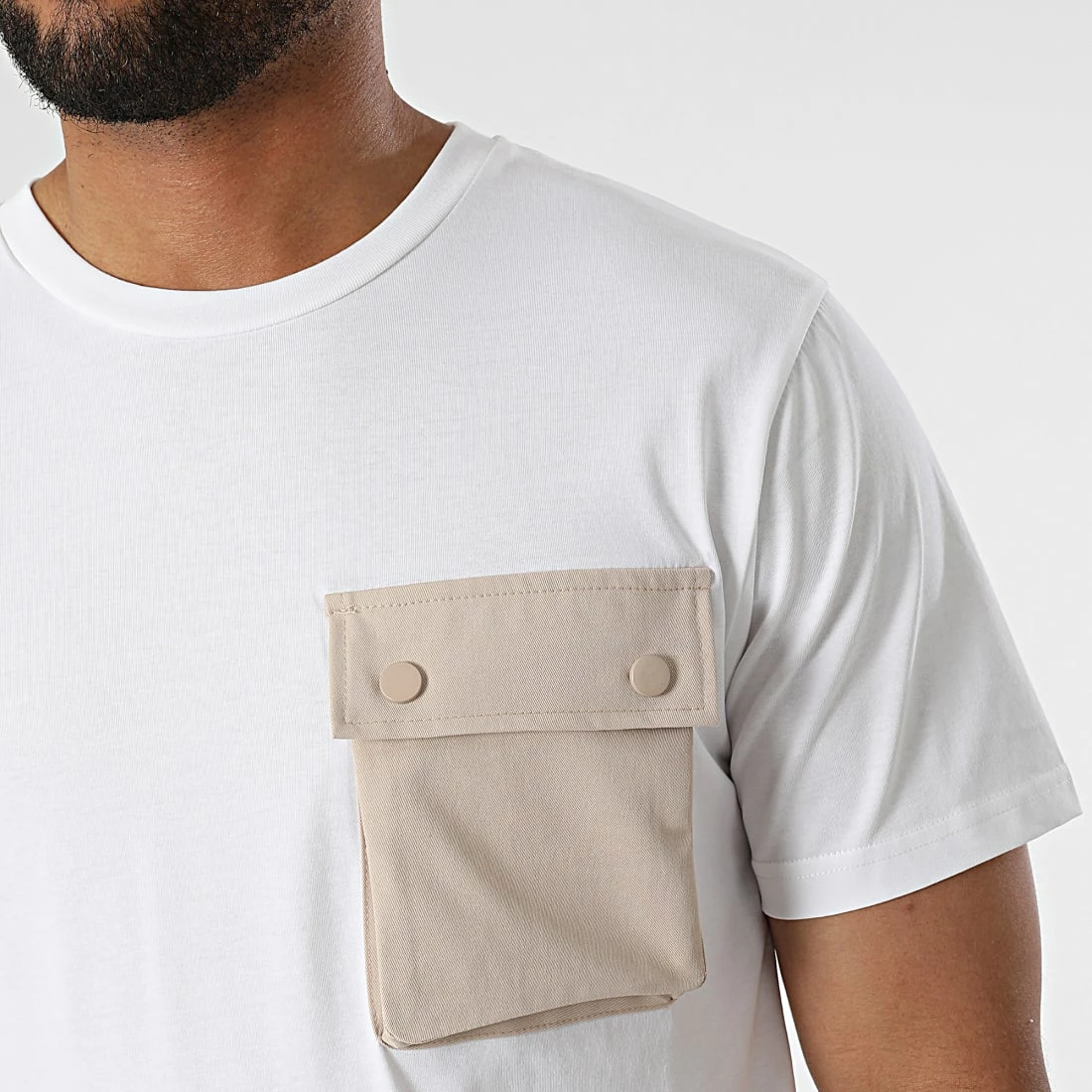 Acheter 😍 Tee 👚 Shirt Poche T8815 Blanc Beige de John H 💯