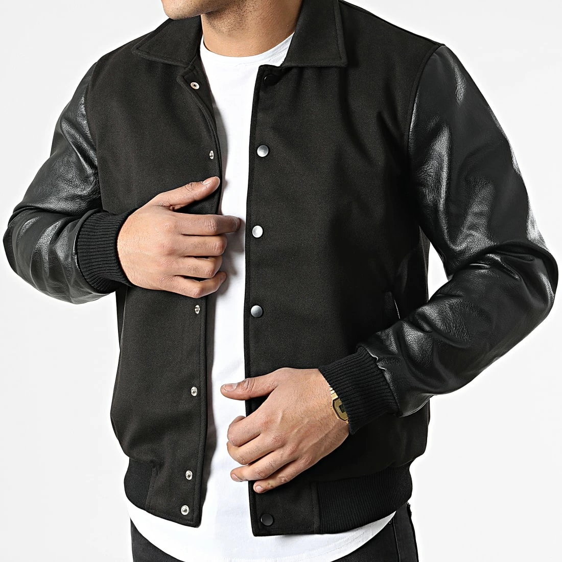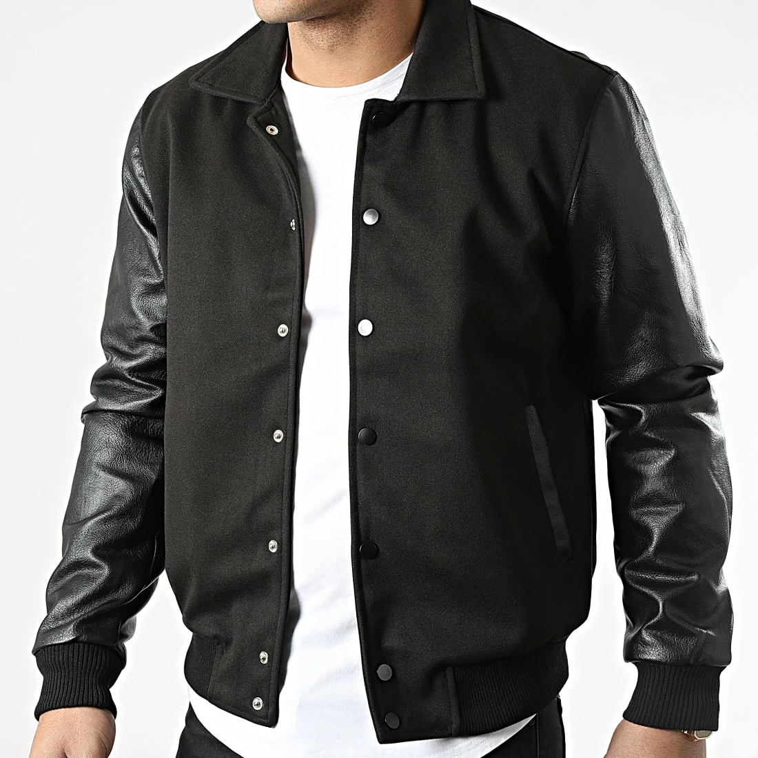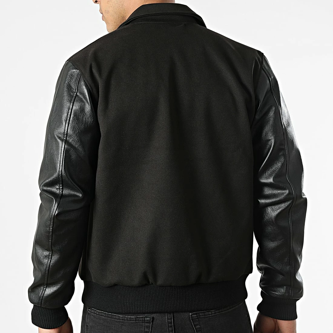 • Veste bi-matière à manches aspect cuir